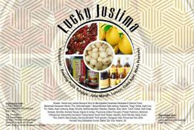 Komposisi LUCKY JUSLIMA : bawang putih tunggal, lemon lokal, jahe merah, cuka apel organik, dan madu pramuka jenis multiflora.